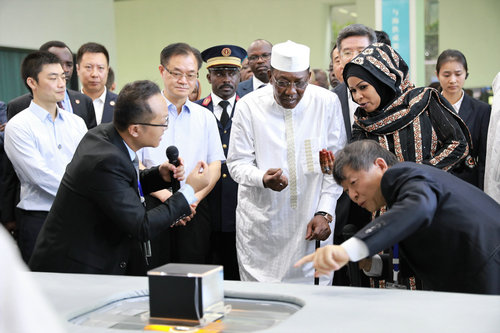 重慶海扶醫療董事長王智彪現場向代比總統演示了從體外對體內做手術,不開刀、不流血、無創傷、保衛器官的聚焦超聲治療技術。非洲育齡期女性的子宮肌瘤、子宮腺肌病發病率偏高,用中國重慶原創的海扶刀®治療,可減輕患者損傷,保護子宮。
