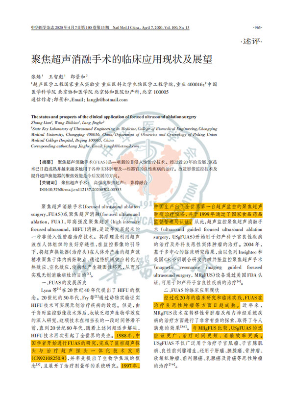 聚焦超聲消融手術臨床應用技術規范專家共識和聚焦超聲消融手術的臨床應用現狀及展望